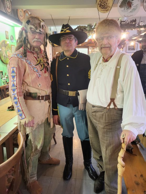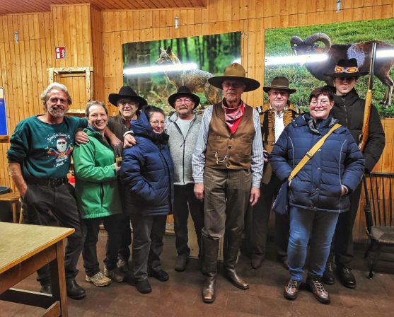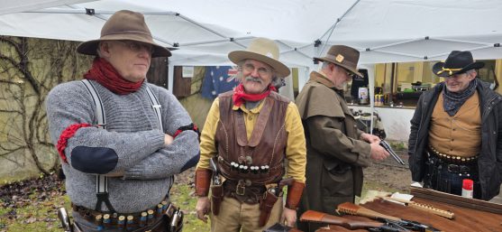 Auch in diesem Jahr war uns Petrus wieder hold, bescherte er uns doch ein Bilderbuchwetter zu unserem Westernschießen, er hat halt ein besonderes Auge auf uns Cowboys.(Hoffentlich erinnert er sich im nächsten Jahr daran) Wir konnten mit unseren Gästen ein wunderschönes Wochenende verbringen, verbunden mit Schießwettbewerben die allen Spaß gemacht haben, auch wurden wieder in den verschiedenen Disziplinen sehr gute Ergebnisse erzielt. Unser Preistisch war mit super Preisen bestückt, jeder Teilnehmer konnte einen Preis mit nach Hause nehmen. Dank unseren Gästen aus mehreren Ländern hatten wir eine super Stimmung und „Nobby“ präsentierte zusammen mit seiner Frau Countrymusic vom Feinsten. Es war ein schöner Abend im Saloon, als Gast mit der Gitarre mischte auch Dr. Stefan Görisch spontan mit. Wie immer war für das leibliche Wohl bestens gesorgt, eine Mischung am Grill aus Tex/Mex – und saarländischer Küche kam gut an, eine Kuchentheke mit hausgemachten Torten und Kuchen brauchte den internationalen Vergleich nicht zu scheuen, auch die Frühstücksteilnehmer konnten mit einem zünftigen Westernfrühstück (auch Cowboys wollen Marmelade dabei) in den Tag starten. Ein riesiges Dankeschön an alle Helferinnen und Helfer, die wieder alles gegeben haben, (Profis aus der Gastronomie und der Veranstaltungstechnik sind Waisenkinder dagegen) zeigen hier, was ein guter Zusammenhalt im Verein möglich macht. Ein wichtiger Aspekt bei so einer Schießveranstaltung ist das Thema Sicherheit, hier ein Dank an alle Teilnehmer für die sichere Handhabung, die Standaufsichten beobachten das Geschehen mit Argusaugen, aber auch für das faire und kameradschaftliche Verhalten. Rundherum eine gelungene Veranstaltung, die Lust auf ein Fortsetzung macht. Unser Nikolausschießen findet am 06.12.2025 statt, bei dem wir und natürlich auch der Nikolaus, alle gerne wieder begrüßen